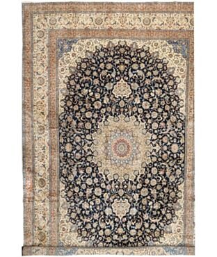 Üppige Ornamente und Arabesken in sanften Tönen sind das Markenzeichen des Nain-Teppichs. Ursprünglich war die Stadt für ihre kunstfertigen Tuchmacher bekannt und berühmt; vor rund hundert Jahren entwickelte sich hier auch eine ganz eigene Teppich-Knüpftradition. Bei den besonders feinen Exemplaren dieser Gattung werden Musterdetails mit Seide herausgearbeitet.
