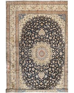 Üppige Ornamente und Arabesken in sanften Tönen sind das Markenzeichen des Nain-Teppichs. Ursprünglich war die Stadt für ihre kunstfertigen Tuchmacher bekannt und berühmt; vor rund hundert Jahren entwickelte sich hier auch eine ganz eigene Teppich-Knüpftradition. Bei den besonders feinen Exemplaren dieser Gattung werden Musterdetails mit Seide herausgearbeitet.