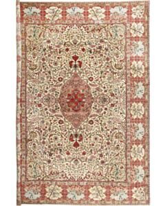 Aus dem nordiranischen Täbris, Hauptstadt der Provinz Ost-Aserbaidschan, stammt dieser Teppich. Die pulsierende Metropole besitzt eine über 500 Jahre alte Knüpftradition: In den alteingesessenen städtischen Manufakturen wurden früher große Teppiche für prächtige Paläste gefertigt. In Täbris begegnen sich verschiedene Kulturen; entsprechend groß ist hier die Vielfalt der Muster und Knüpfqualitäten. Die hochwertigsten Exemplare werden sehr fein geknüpft, mit kurzem Flor aus besonders weicher Wolle; Seidenkonturen betonen die einzelnen Motive.