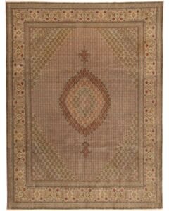 Aus dem nordiranischen Täbris, Hauptstadt der Provinz Ost-Aserbaidschan, stammt dieser Teppich. Die pulsierende Metropole besitzt eine über 500 Jahre alte Knüpftradition: In den alteingesessenen städtischen Manufakturen wurden früher große Teppiche für prächtige Paläste gefertigt. In Täbris begegnen sich verschiedene Kulturen; entsprechend groß ist hier die Vielfalt der Muster und Knüpfqualitäten. Die hochwertigsten Exemplare werden sehr fein geknüpft, mit kurzem Flor aus besonders weicher Wolle; Seidenkonturen betonen die einzelnen Motive.