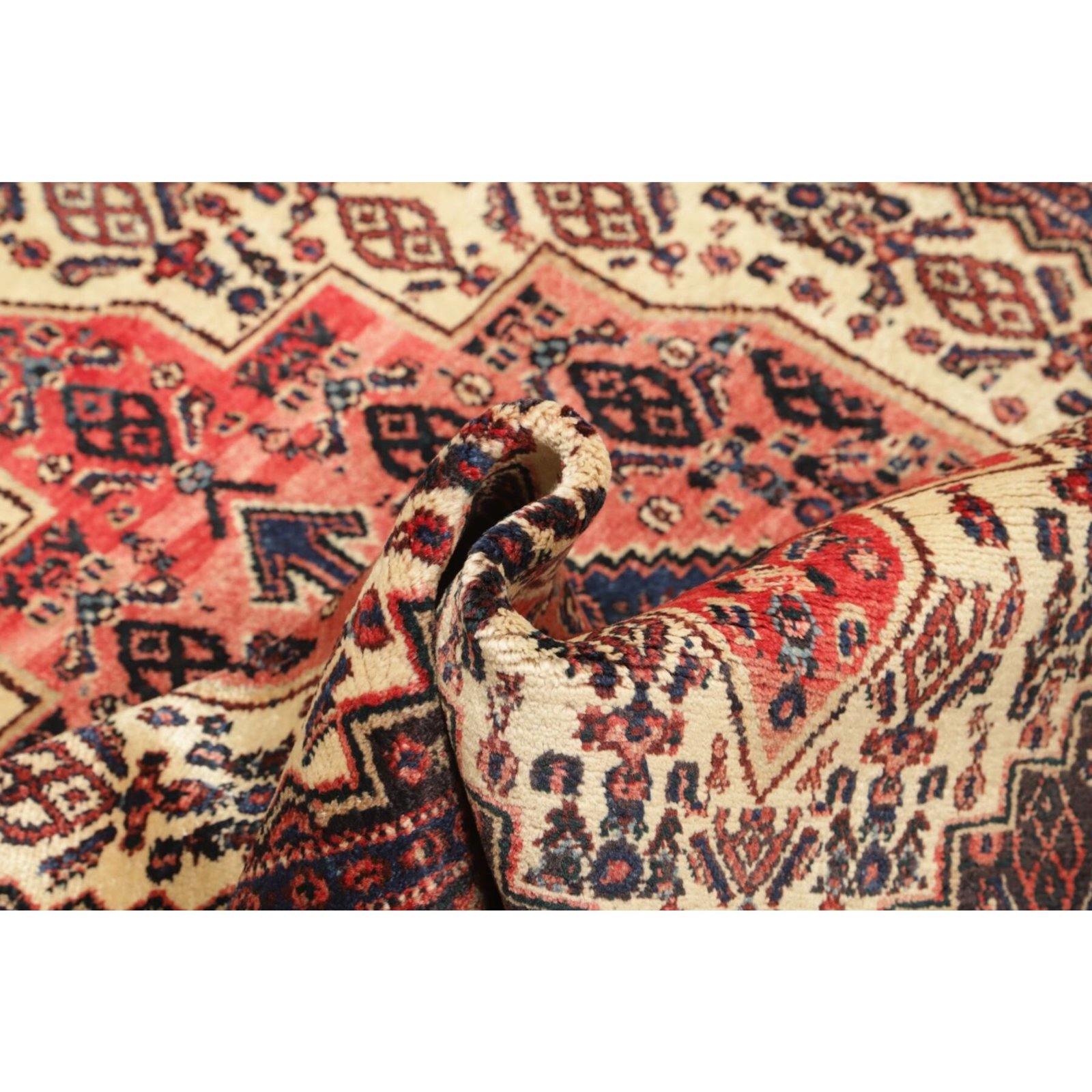 Diese Teppiche aus dem Iran sind handgeknüpft, normalerweise mit asymmetrischen Knoten bis zu einer Dichte von ca. 250.000 bis 380.000 Knoten pro Qm. Die Kette und Schussstruktur besteht aus Baumwolle. Der Flor, der Teppiche besteht aus sehr feiner Schurwolle.