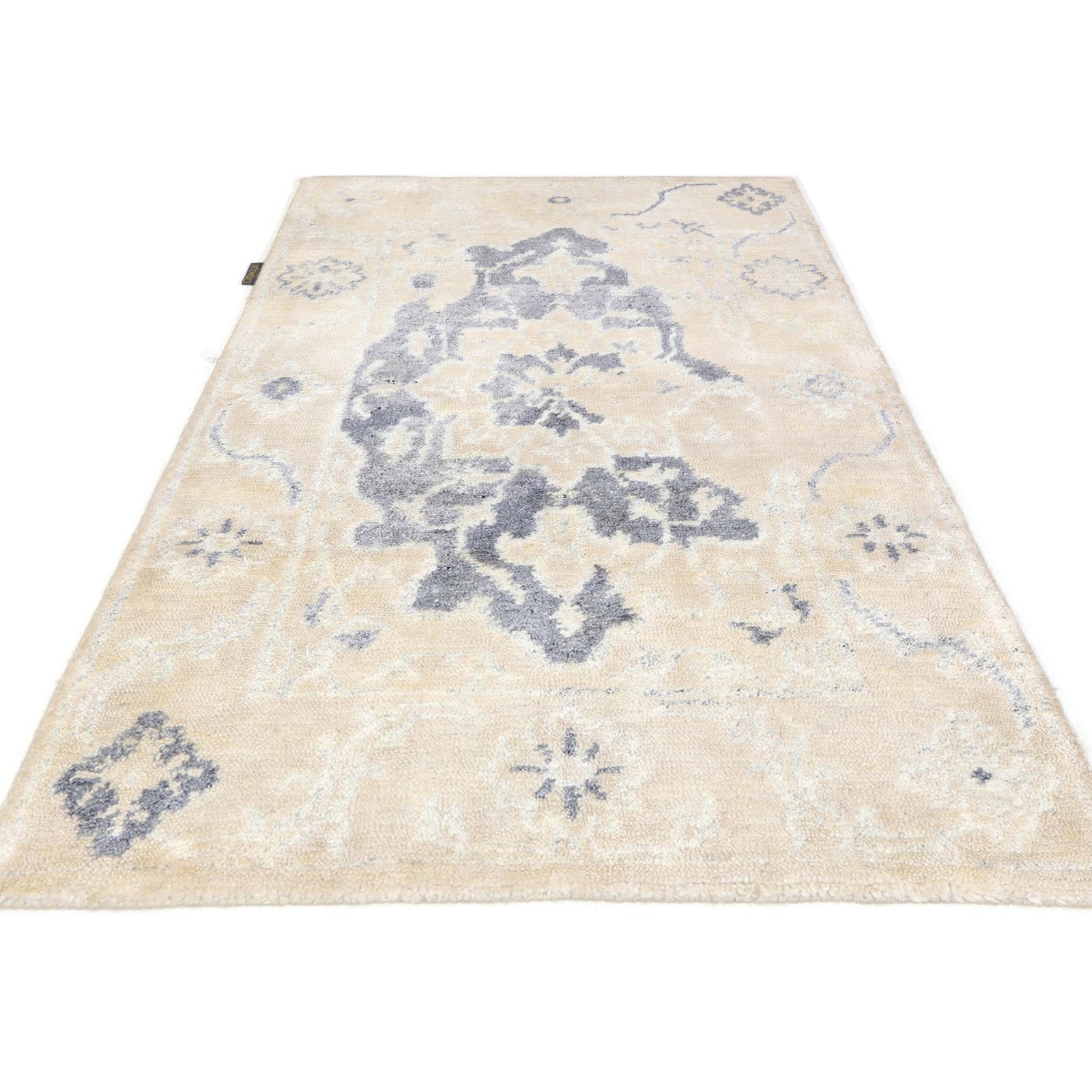 Diese Teppiche aus Indien sind handgeknüpft, normalerweise mit Tibetische Knoten bis zu einer Dichte von ca. 140.000 bis 260.000 Knoten pro Qm. Die Kette und Schussstruktur besteht aus Baumwolle. Der Flor, der Teppiche besteht aus Nessel und Seide.