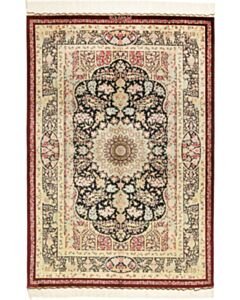 Diese Teppiche aus dem Iran sind handgeknüpft, normalerweise mit asymmetrischen Knoten bis zu einer Dichte von ca. 500.000 bis 800.000 Knoten pro Qm. Die Kette und Schussstruktur besteht aus Baumwolle. Der Flor, der Teppiche besteht aus sehr feiner Korkwolle mit Seide.