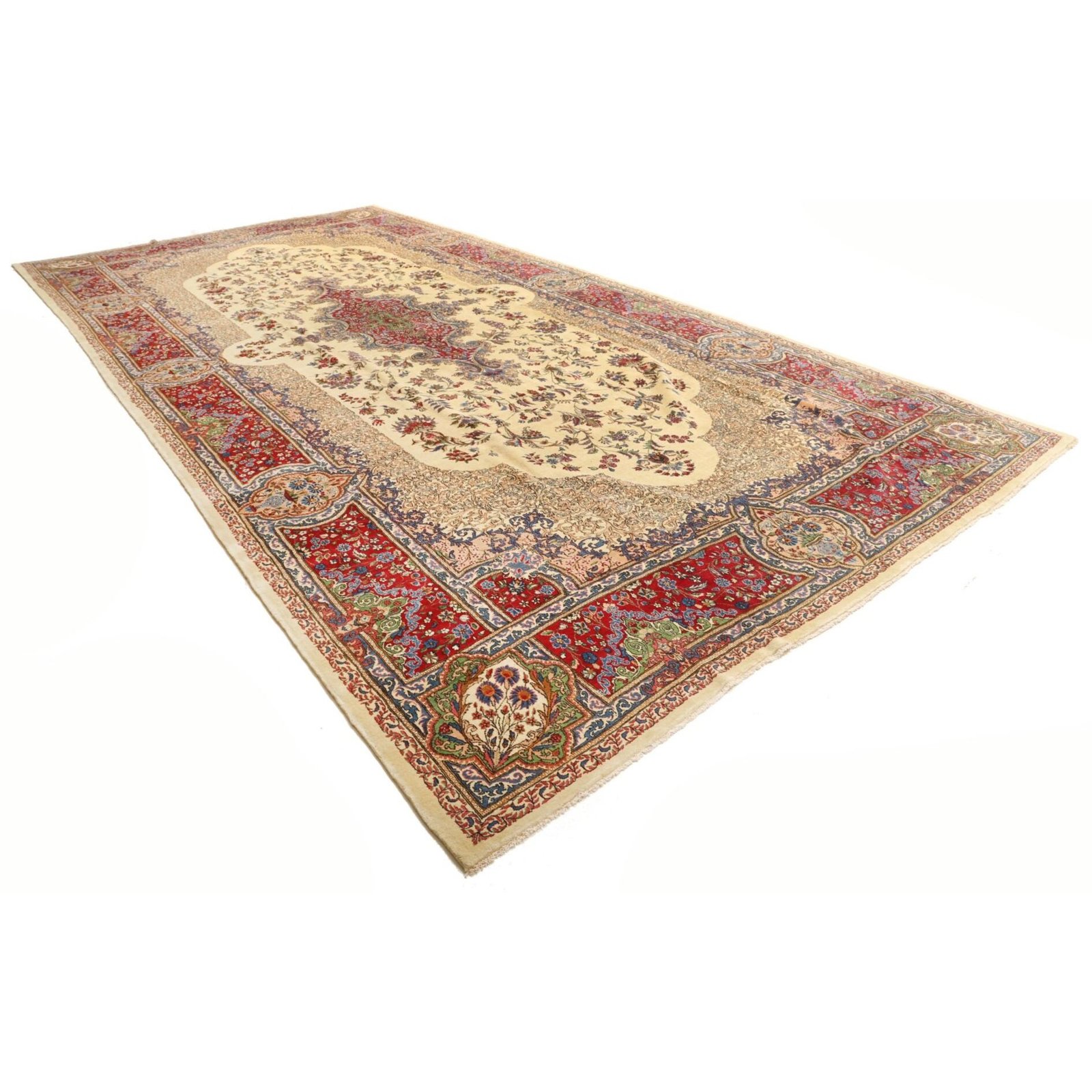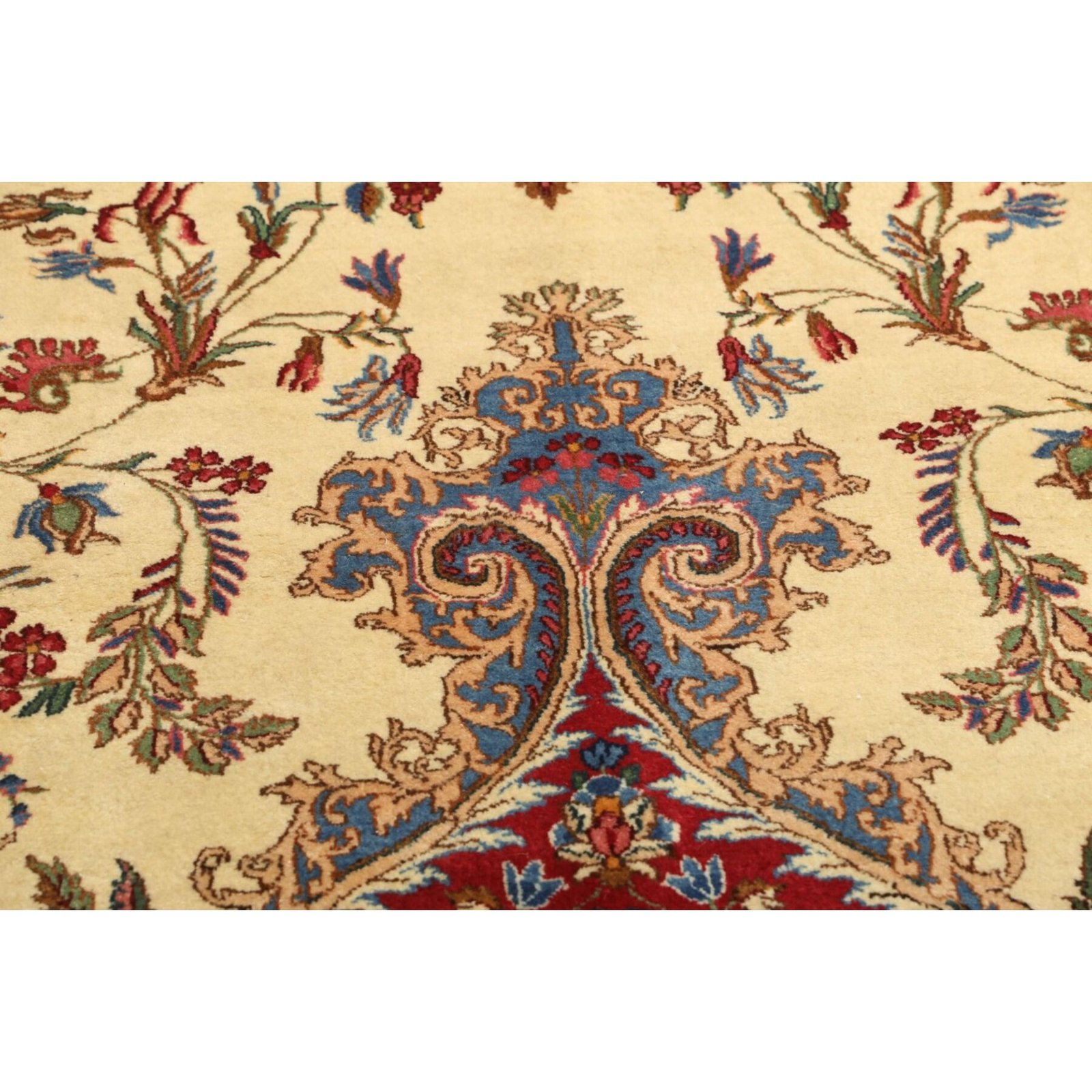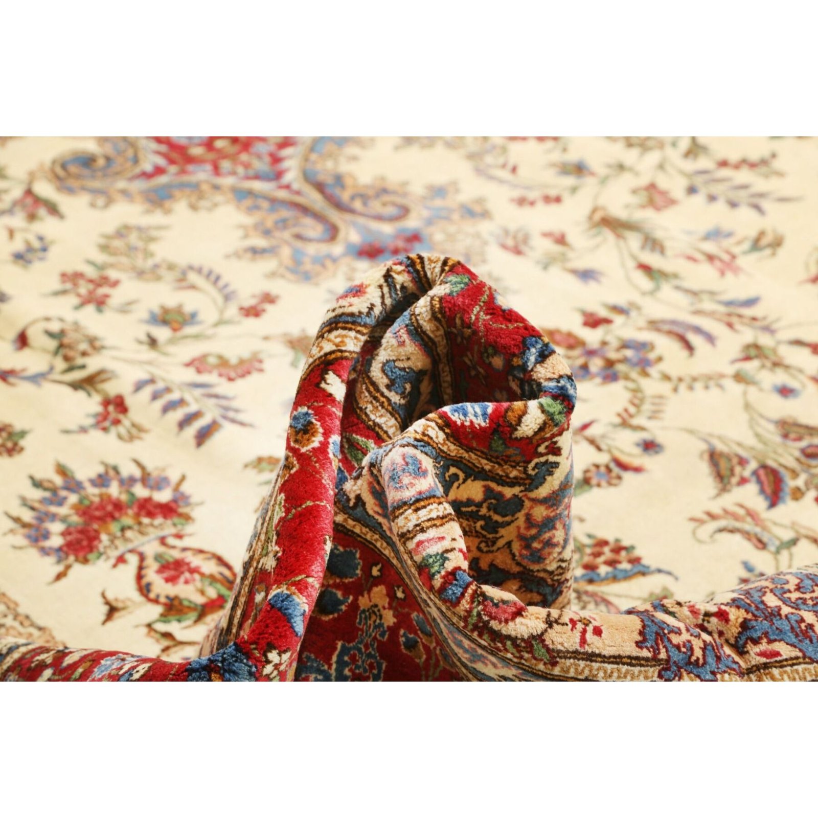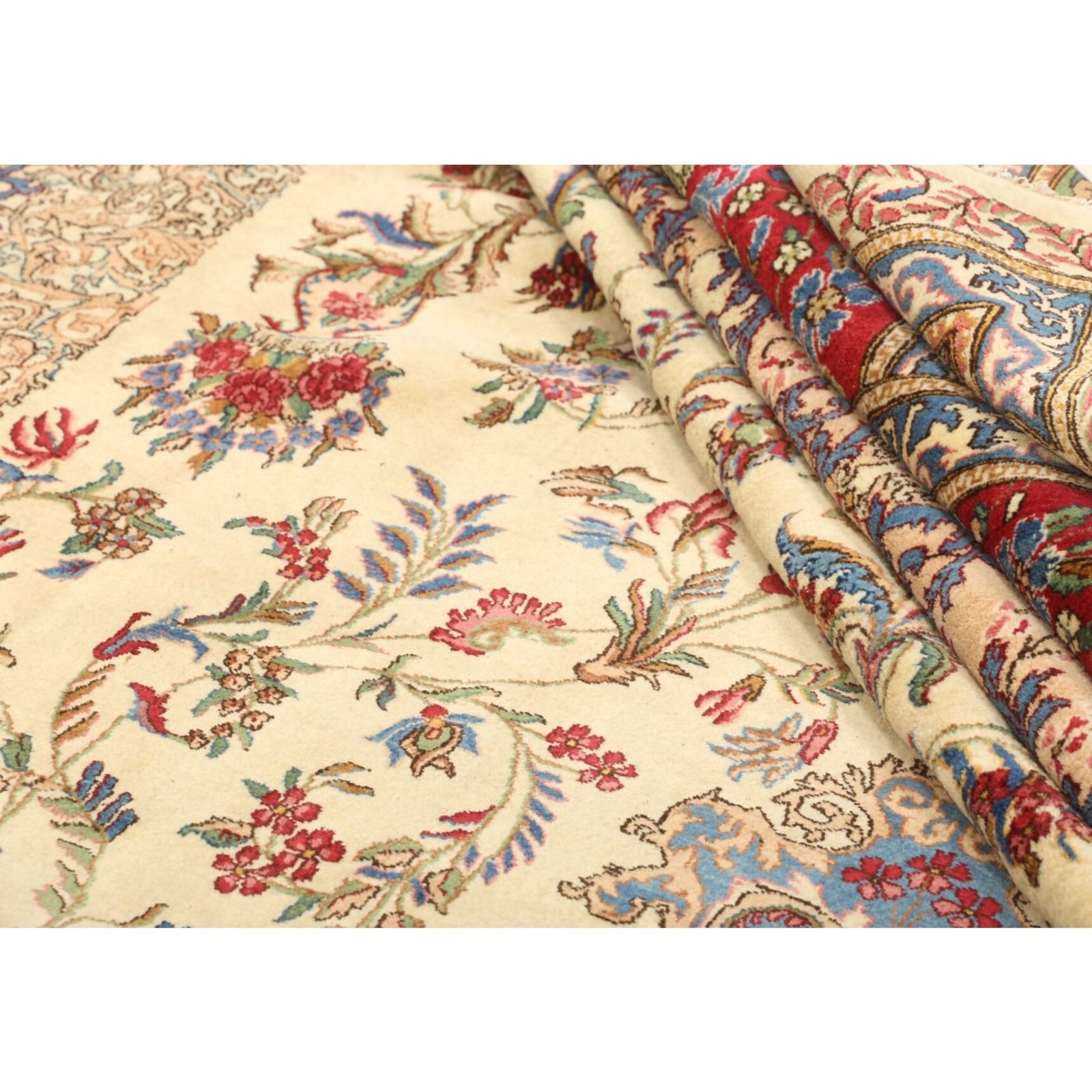 Diese Teppiche aus dem Iran sind handgeknüpft, normalerweise mit asymmetrischen Knoten bis zu einer Dichte von ca. 220.000 bis 380.000 Knoten pro Qm. Die Kette und Schussstruktur besteht aus Baumwolle. Der Flor, der Teppiche besteht aus sehr feiner Hochlandwolle.