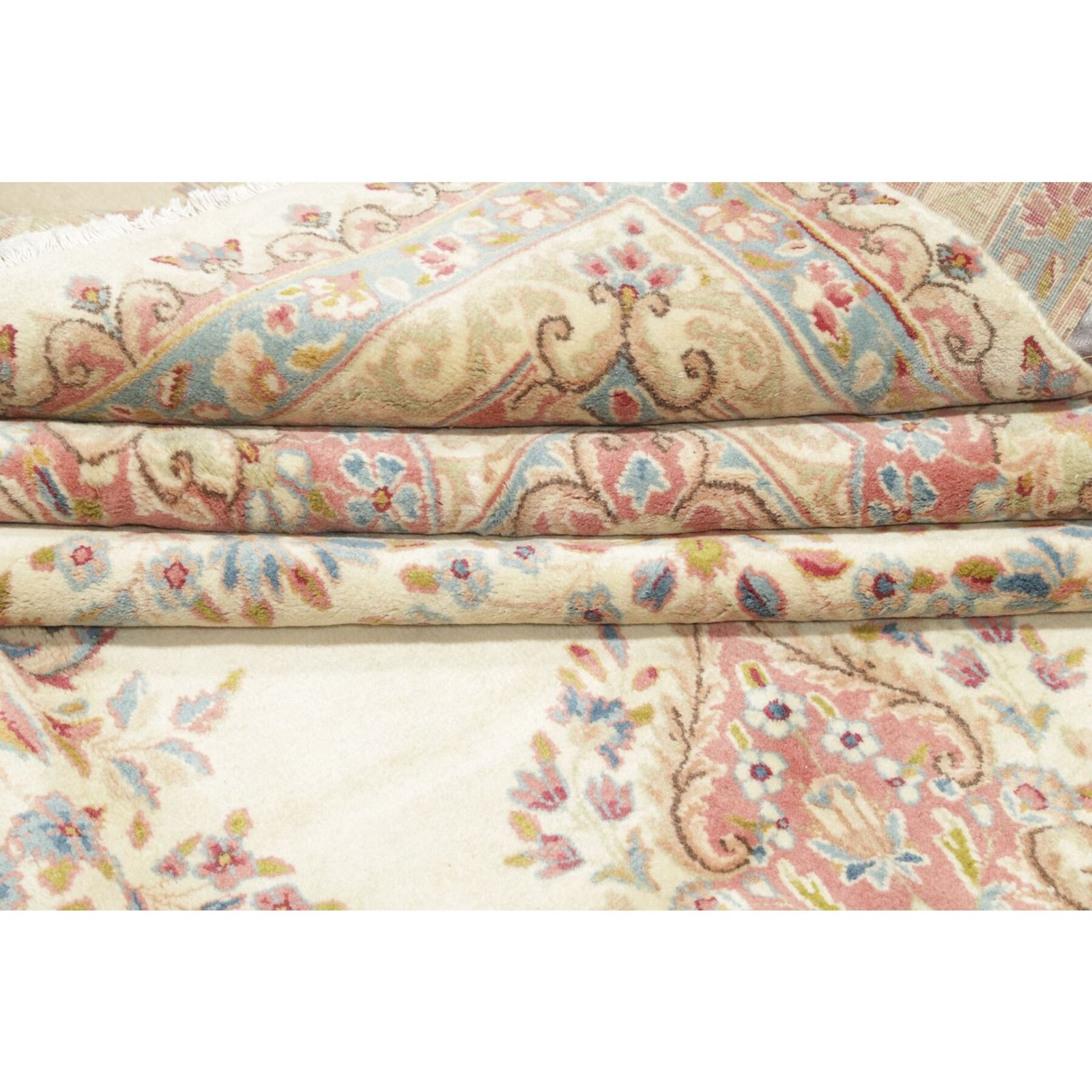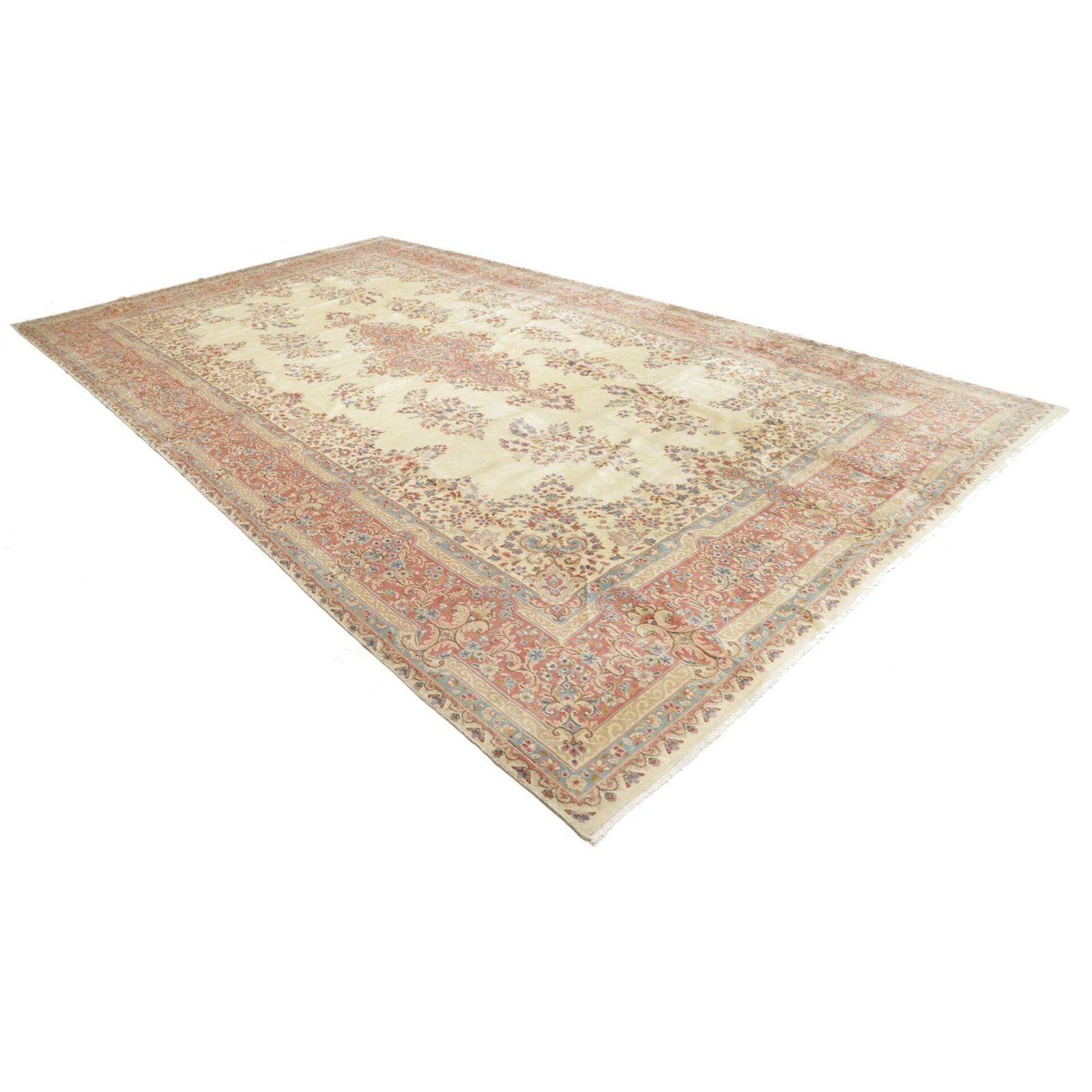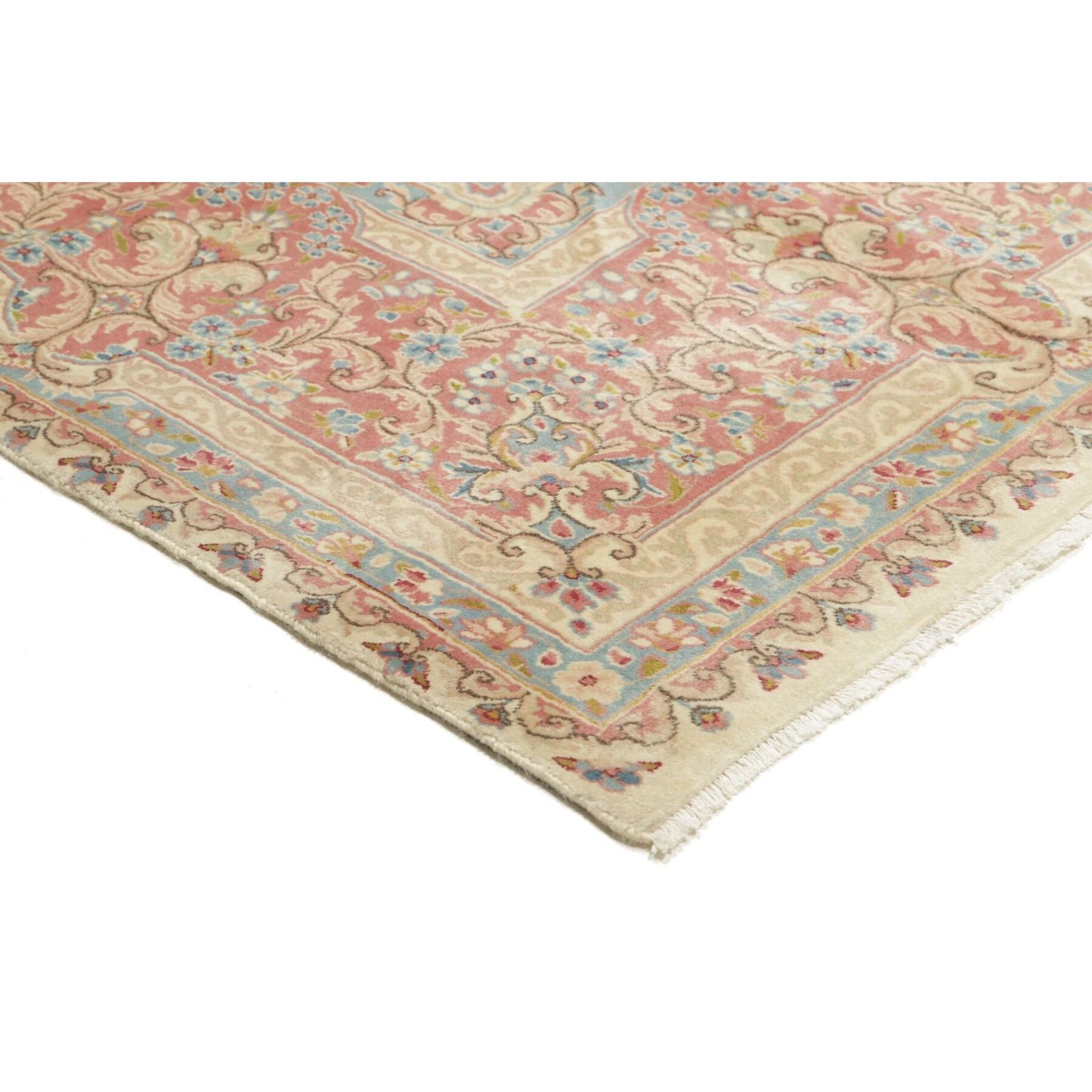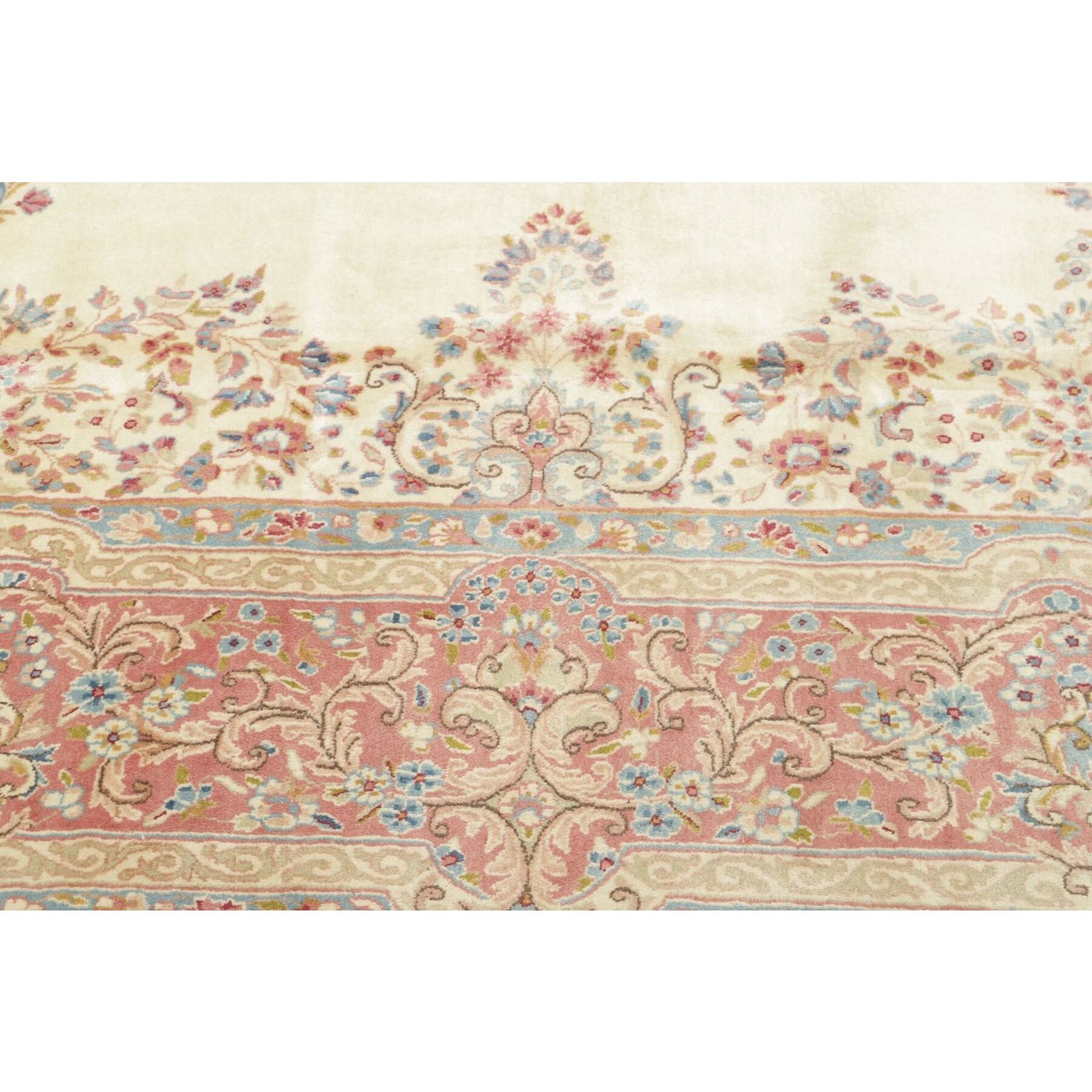 Die ersten Kerman-Teppiche wurden in Kerman, einer iranischen Stadt im Südosten des Landes, vor über tausend Jahren hergestellt. Kerman-Teppiche wurden auf der ganzen Welt populär gemacht, als Marco Polo ihre unglaubliche Handwerkskunst und ihr unverwechselbares Design bemerkte. Sie zeichnen sich normalerweise durch ein florales oder architektonisches Thema in der Bordüre, mit einem Medaillon in der Mitte des Teppich aus.