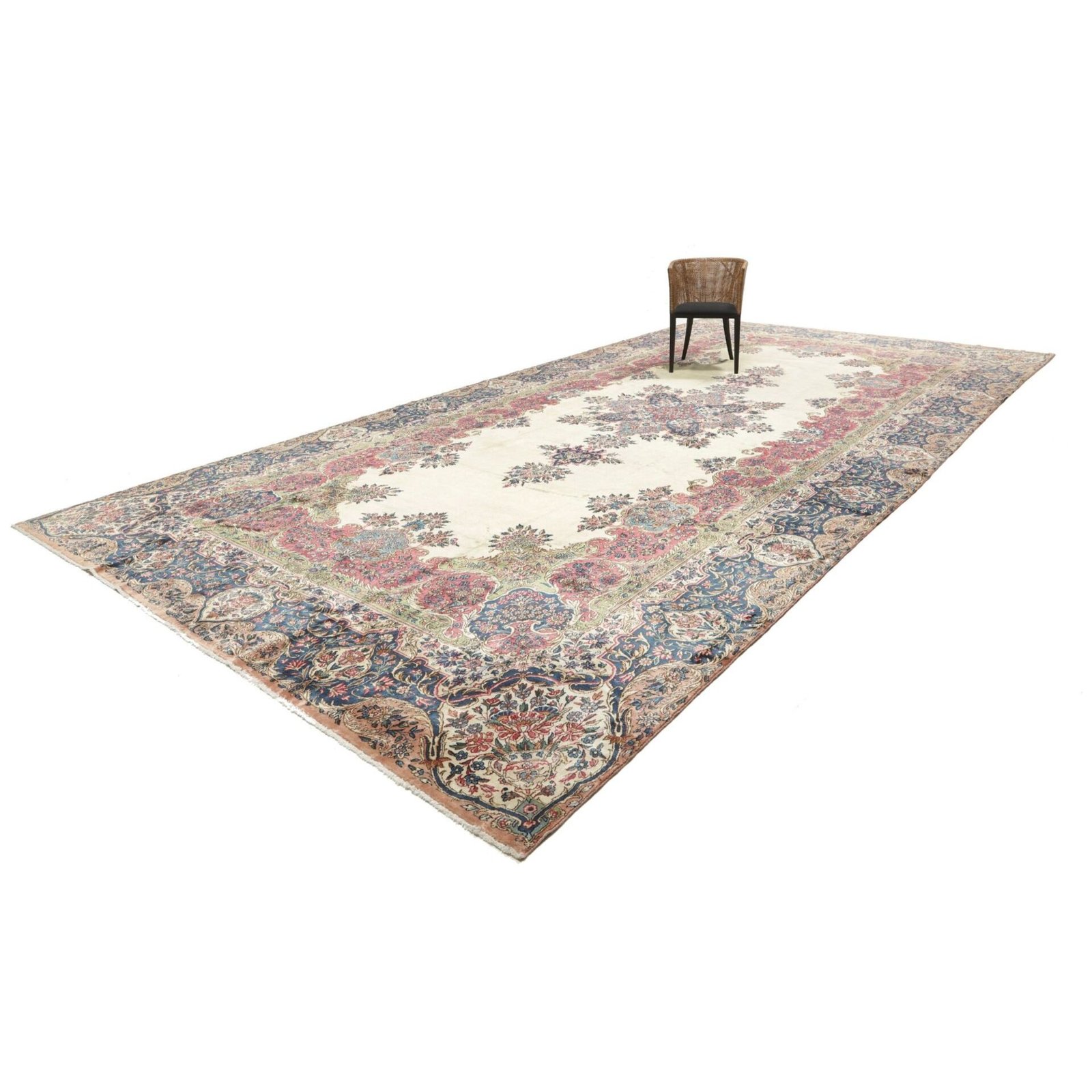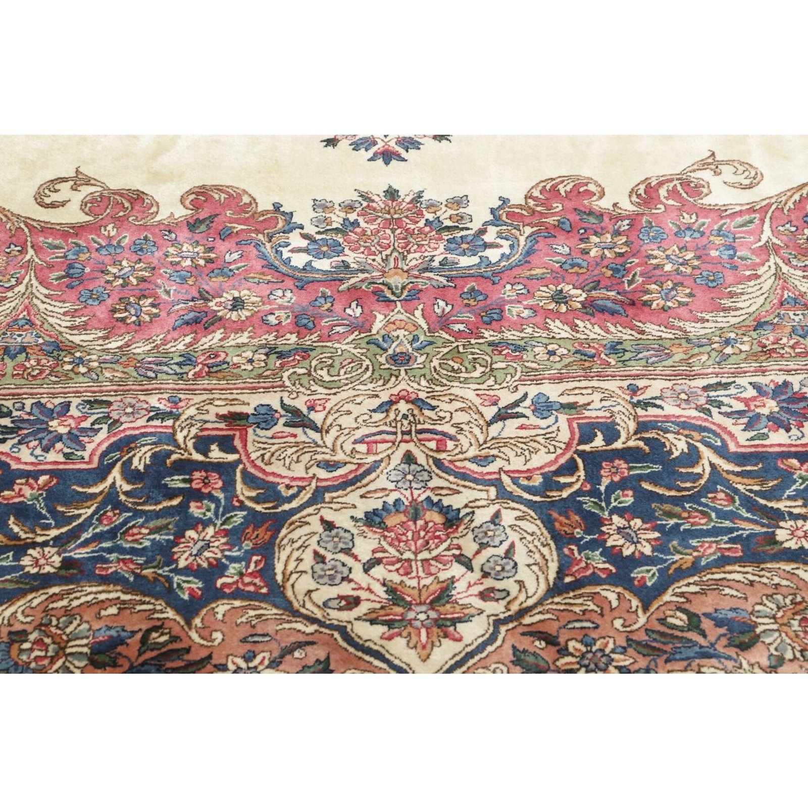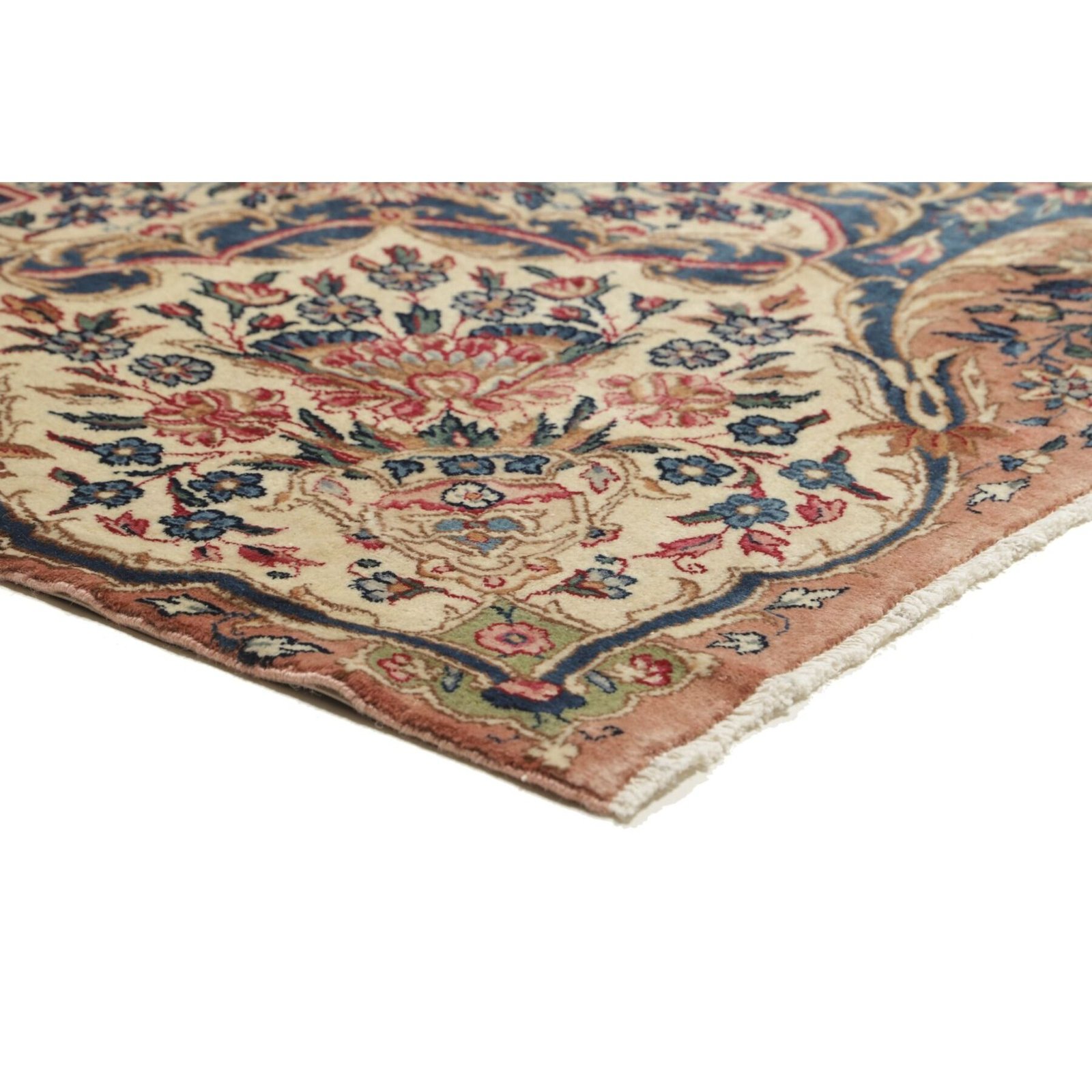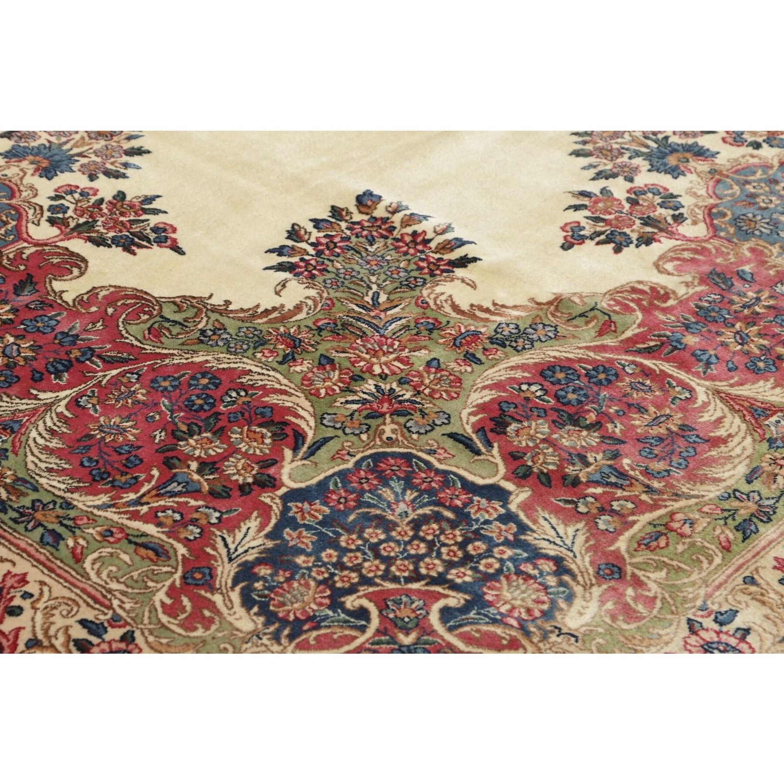 Die ersten Kerman-Teppiche wurden in Kerman, einer iranischen Stadt im Südosten des Landes, vor über tausend Jahren hergestellt. Kerman-Teppiche wurden auf der ganzen Welt populär gemacht, als Marco Polo ihre unglaubliche Handwerkskunst und ihr unverwechselbares Design bemerkte. Sie zeichnen sich normalerweise durch ein florales oder architektonisches Thema in der Bordüre, mit einem Medaillon in der Mitte des Teppich aus.