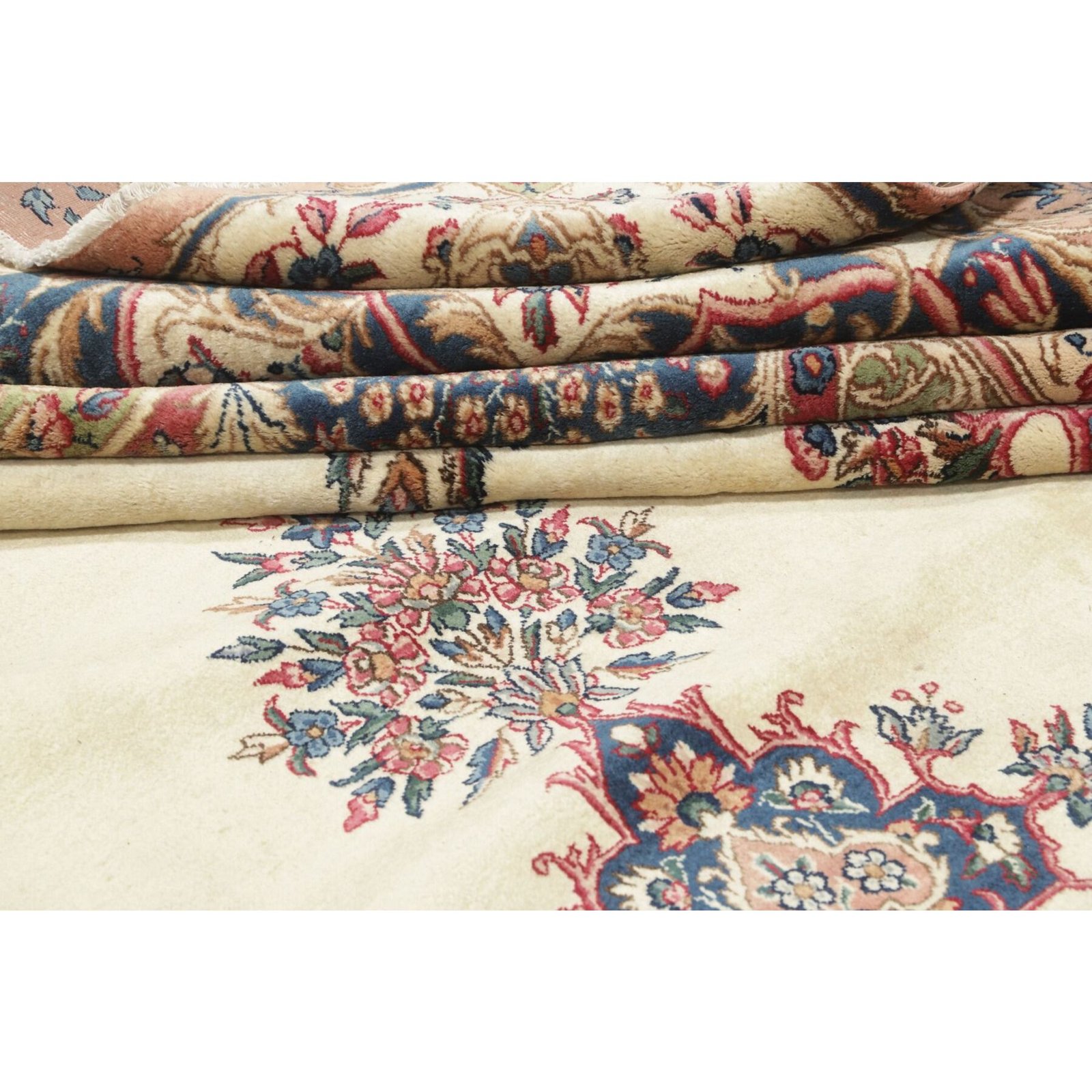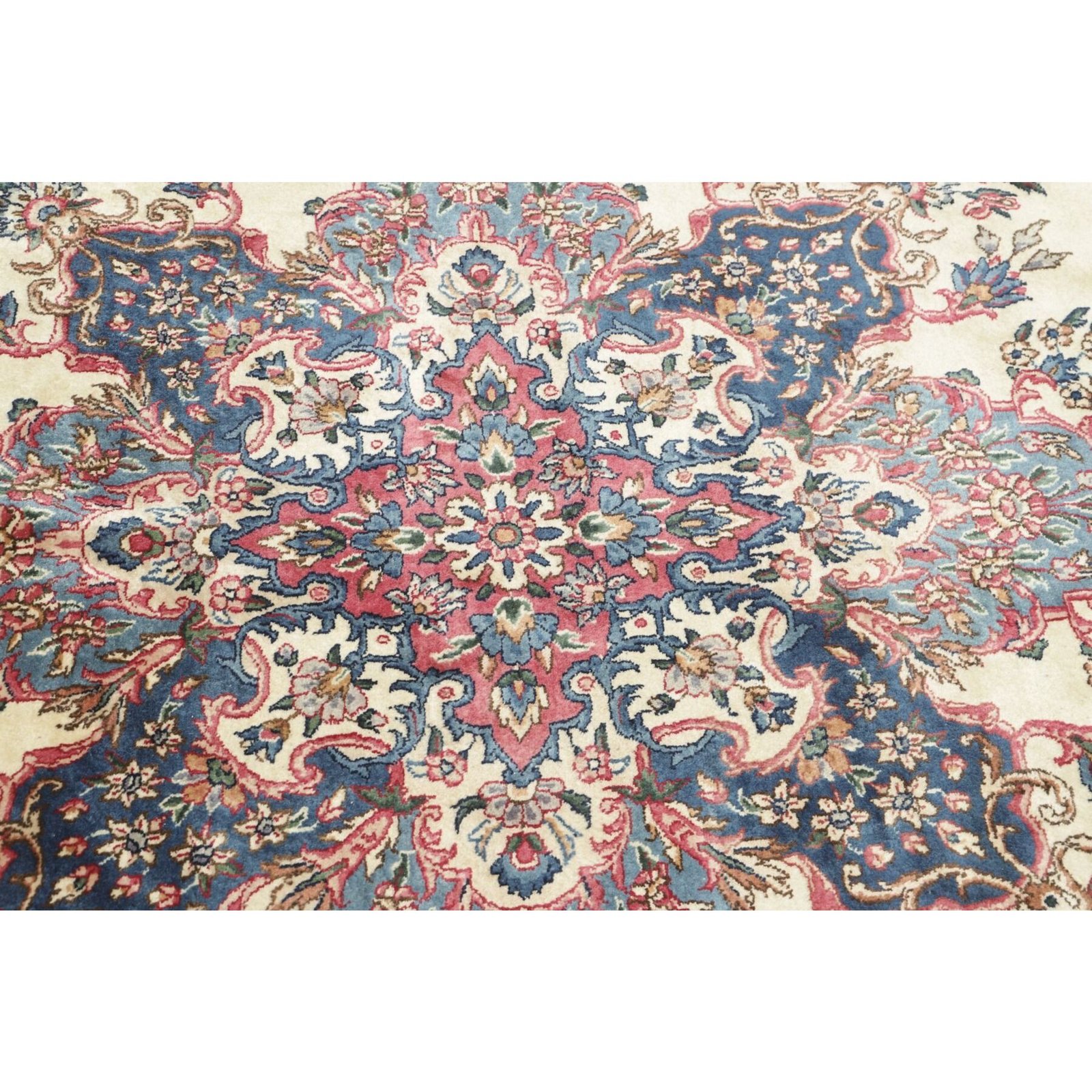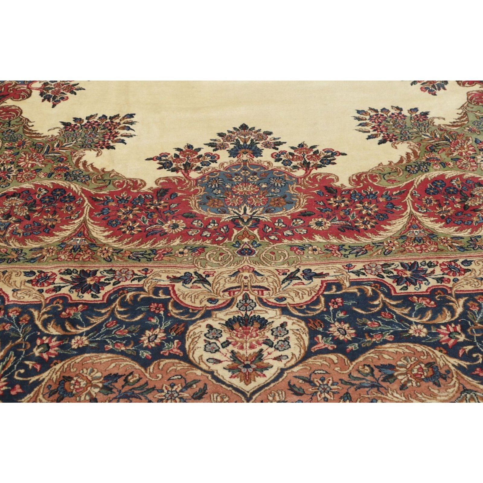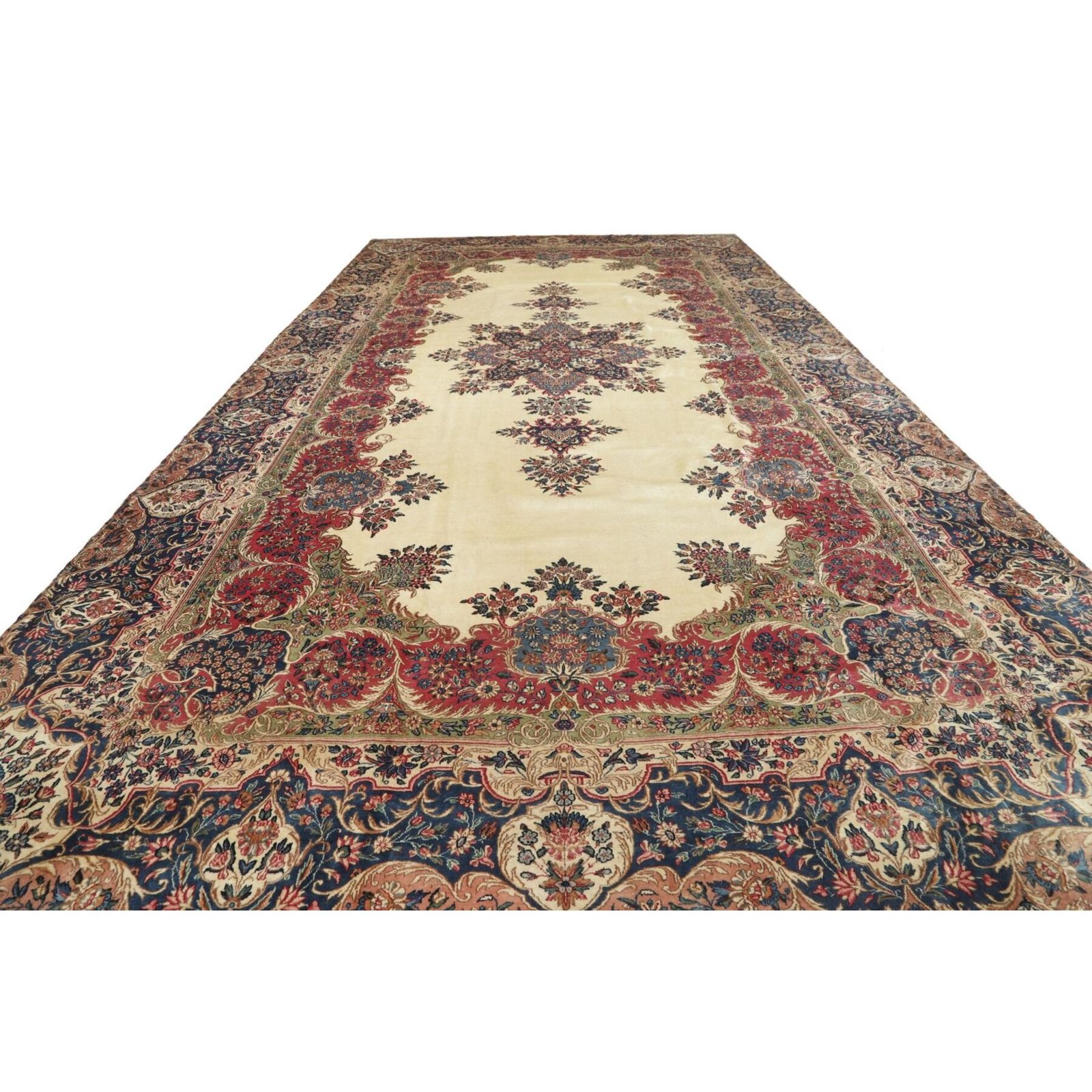 Die ersten Kerman-Teppiche wurden in Kerman, einer iranischen Stadt im Südosten des Landes, vor über tausend Jahren hergestellt. Kerman-Teppiche wurden auf der ganzen Welt populär gemacht, als Marco Polo ihre unglaubliche Handwerkskunst und ihr unverwechselbares Design bemerkte. Sie zeichnen sich normalerweise durch ein florales oder architektonisches Thema in der Bordüre, mit einem Medaillon in der Mitte des Teppich aus.