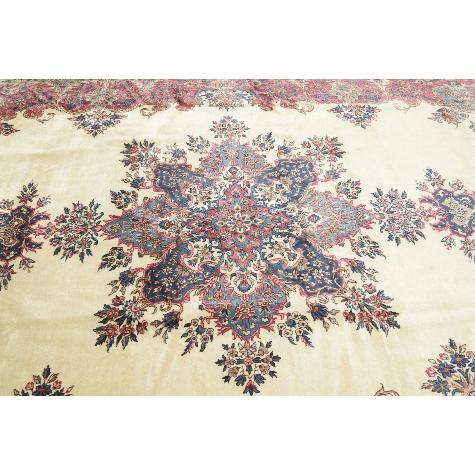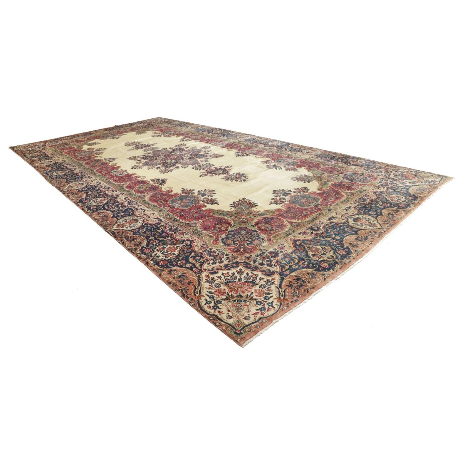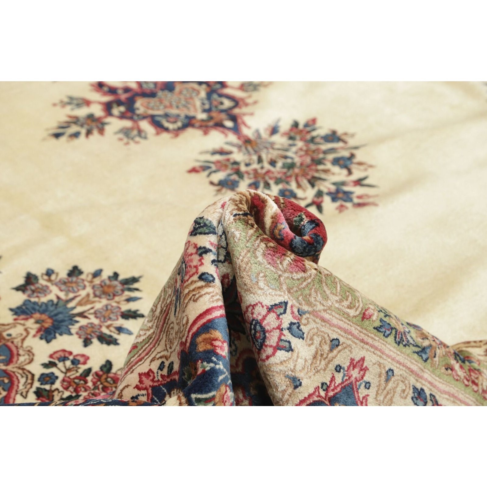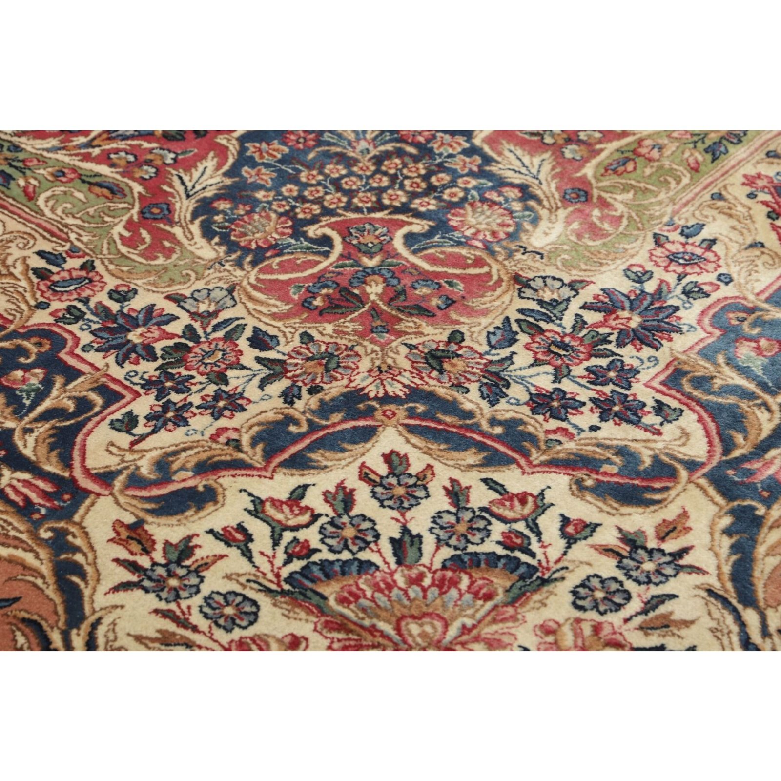 Die ersten Kerman-Teppiche wurden in Kerman, einer iranischen Stadt im Südosten des Landes, vor über tausend Jahren hergestellt. Kerman-Teppiche wurden auf der ganzen Welt populär gemacht, als Marco Polo ihre unglaubliche Handwerkskunst und ihr unverwechselbares Design bemerkte. Sie zeichnen sich normalerweise durch ein florales oder architektonisches Thema in der Bordüre, mit einem Medaillon in der Mitte des Teppich aus.