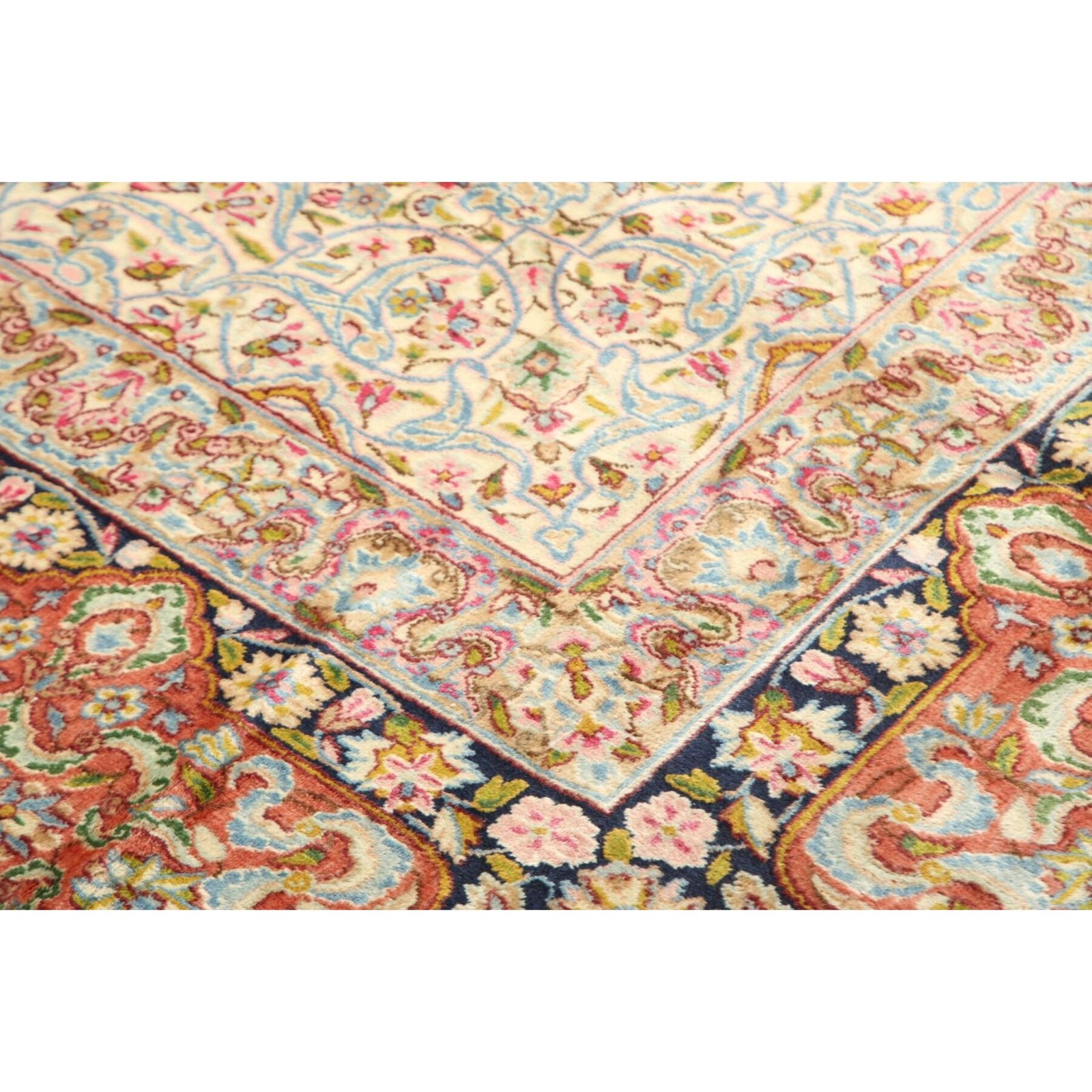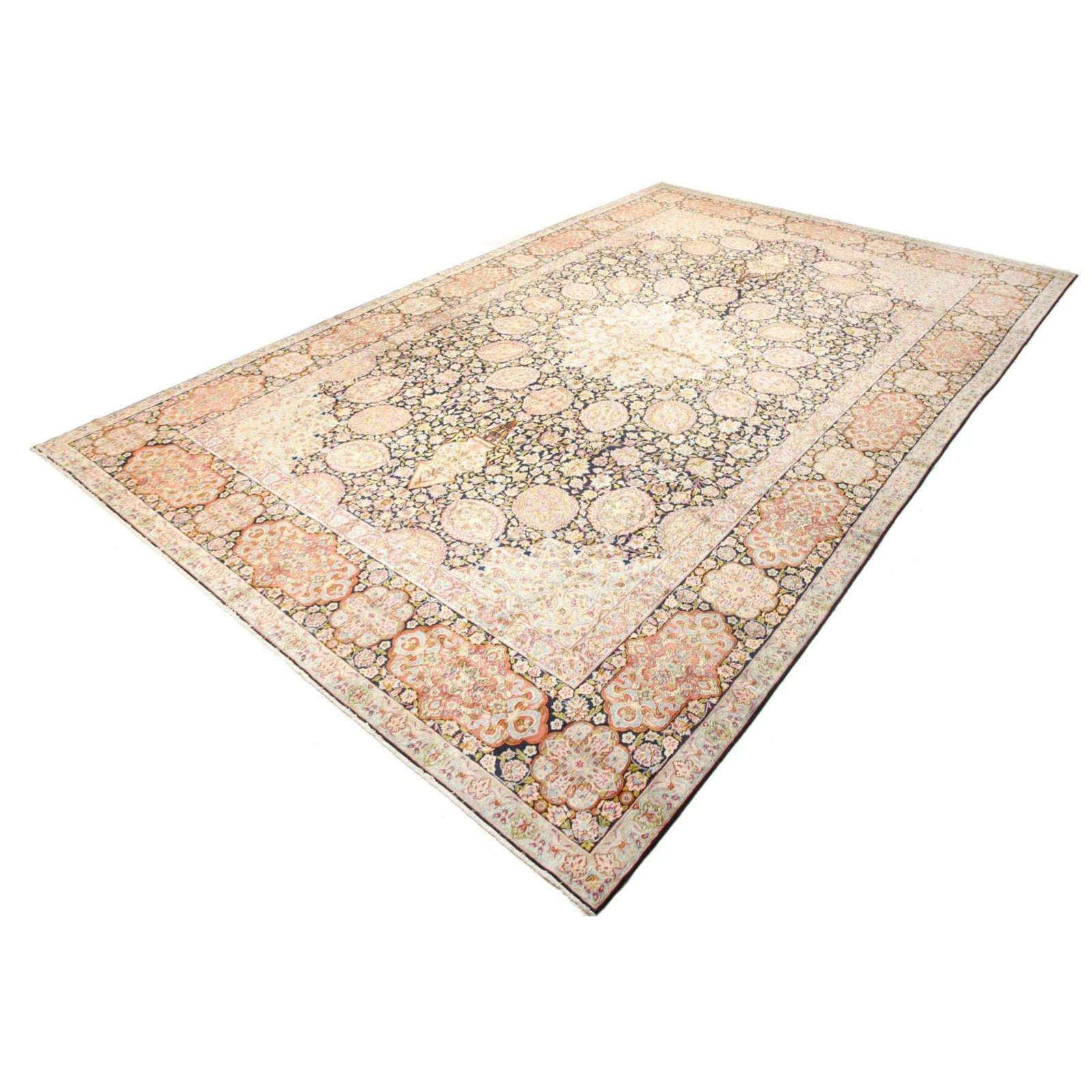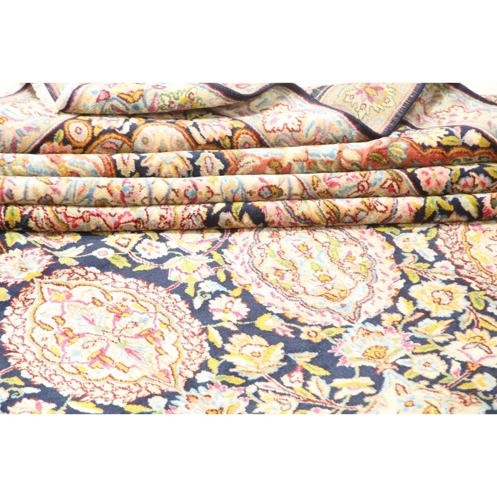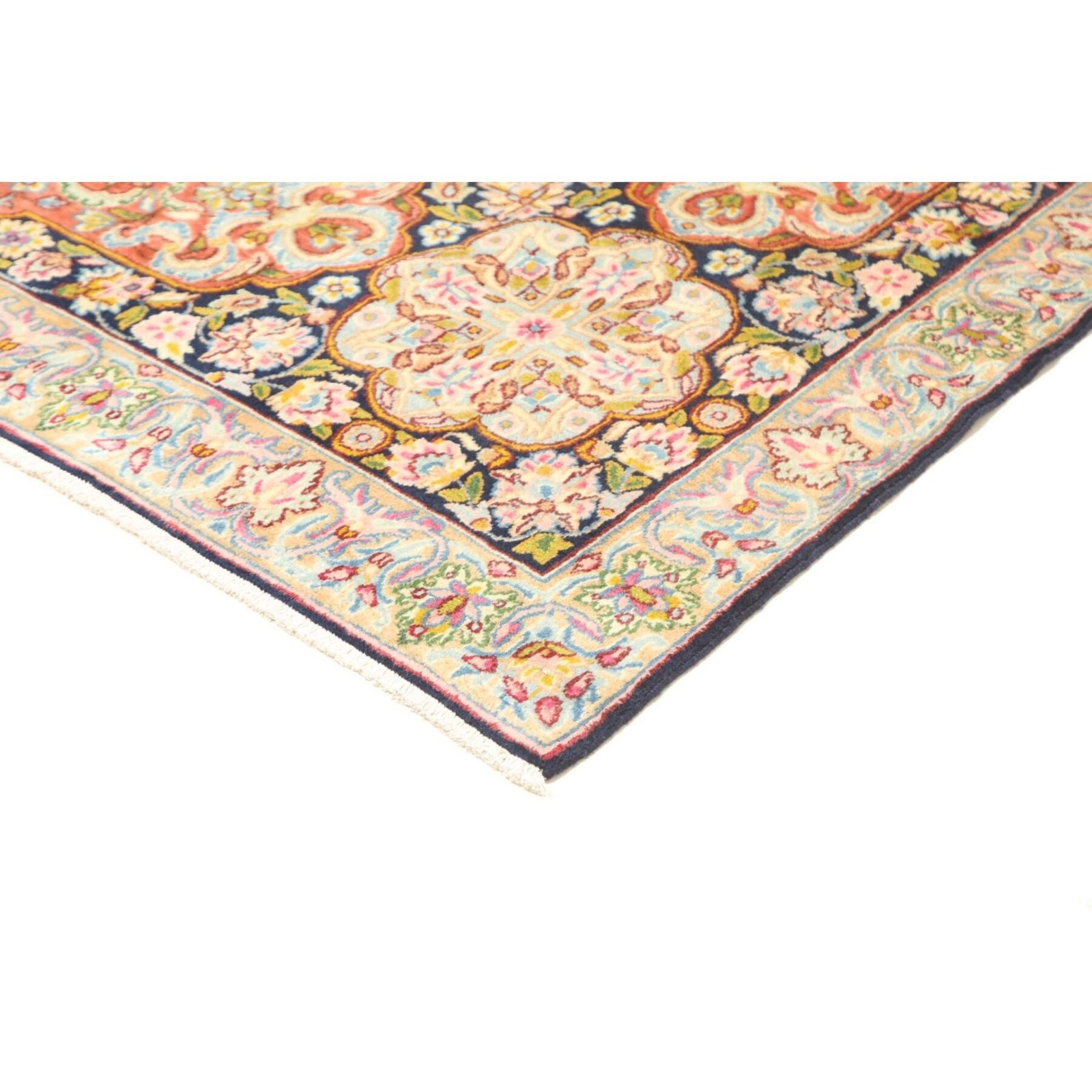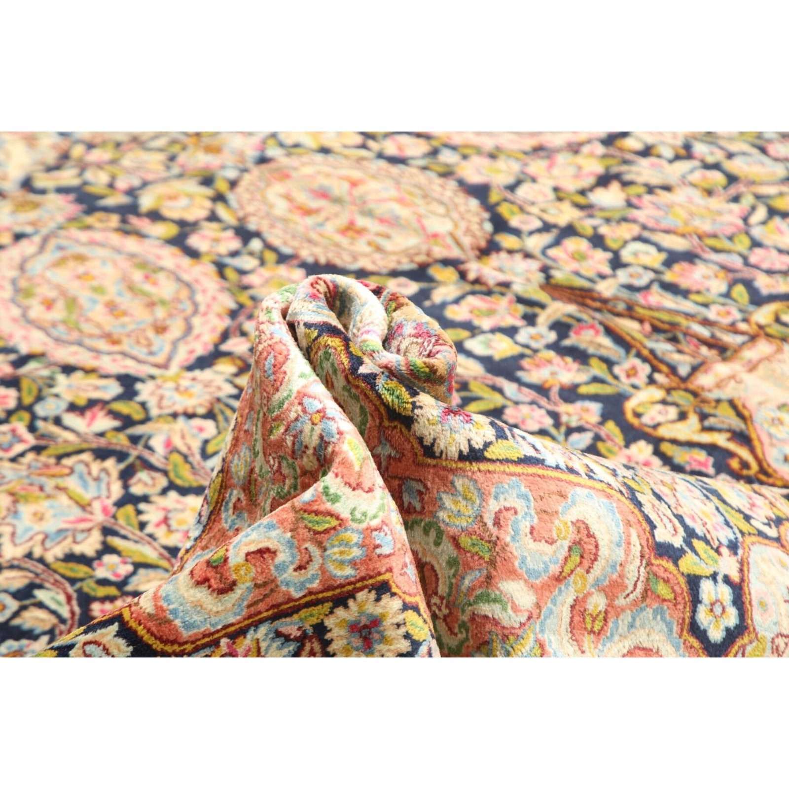 Die ersten Kerman-Teppiche wurden in Kerman, einer iranischen Stadt im Südosten des Landes, vor über tausend Jahren hergestellt. Kerman-Teppiche wurden auf der ganzen Welt populär gemacht, als Marco Polo ihre unglaubliche Handwerkskunst und ihr unverwechselbares Design bemerkte. Sie zeichnen sich normalerweise durch ein florales oder architektonisches Thema in der Bordüre, mit einem Medaillon in der Mitte des Teppich aus.