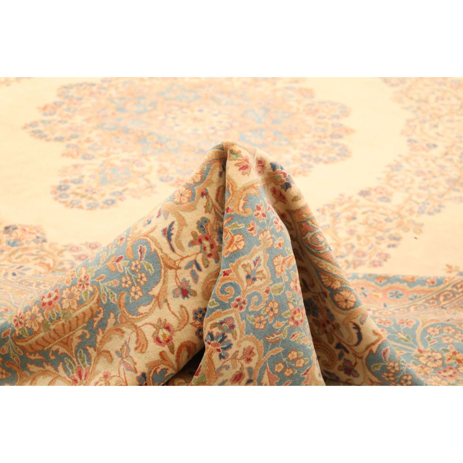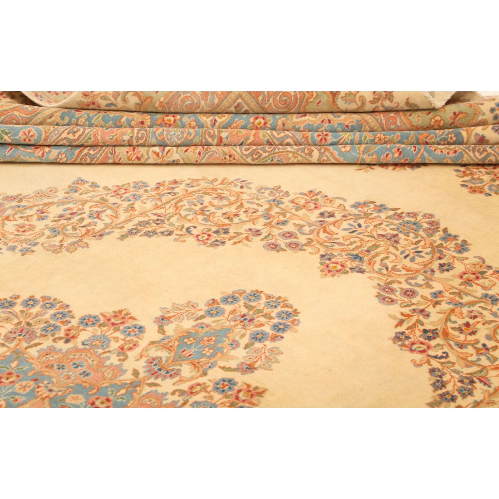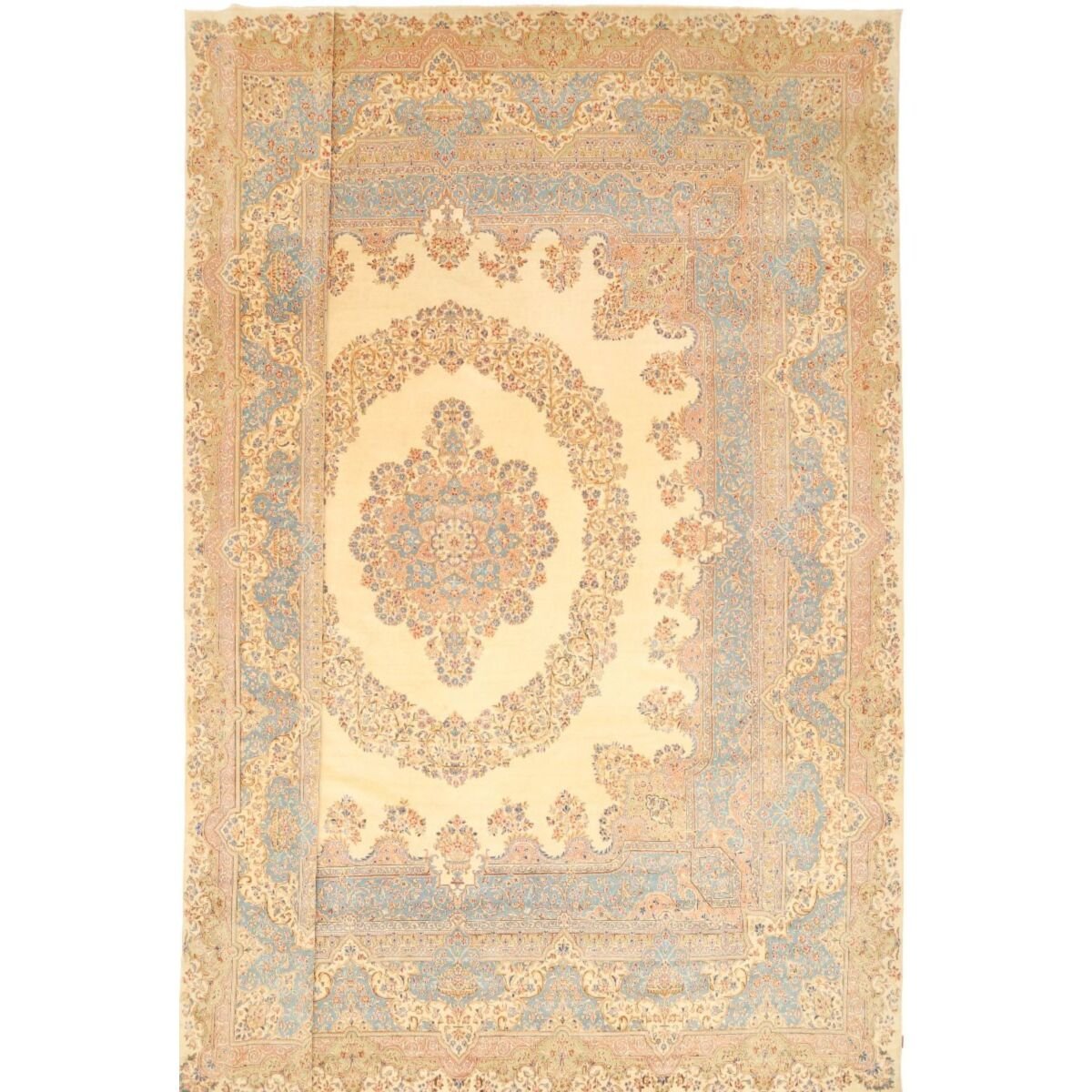 Die ersten Kerman-Teppiche wurden in Kerman, einer iranischen Stadt im Südosten des Landes, vor über tausend Jahren hergestellt. Kerman-Teppiche wurden auf der ganzen Welt populär gemacht, als Marco Polo ihre unglaubliche Handwerkskunst und ihr unverwechselbares Design bemerkte. Sie zeichnen sich normalerweise durch ein florales oder architektonisches Thema in der Bordüre, mit einem Medaillon in der Mitte des Teppich aus.
