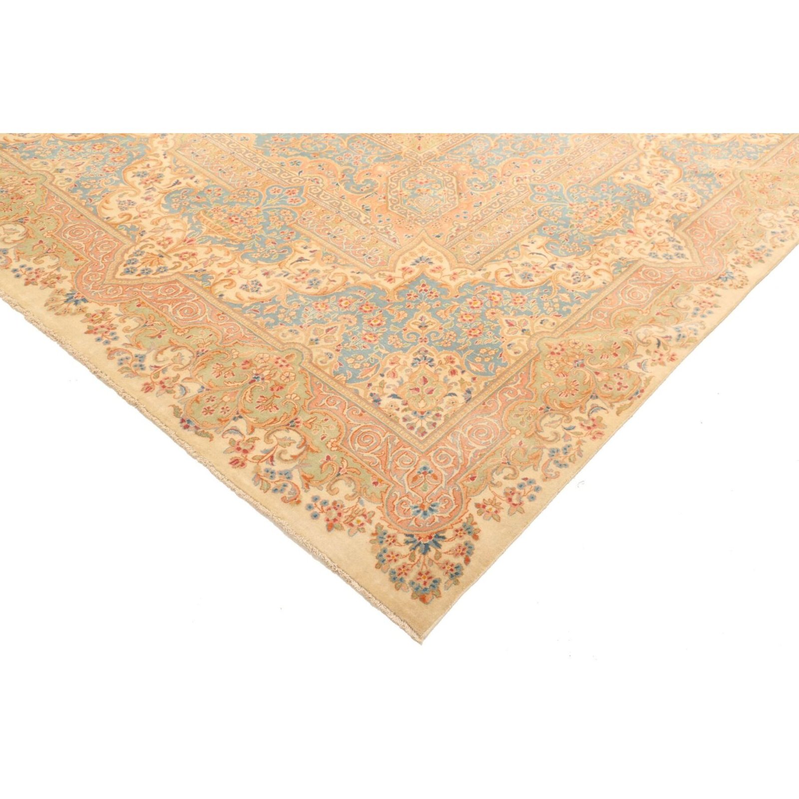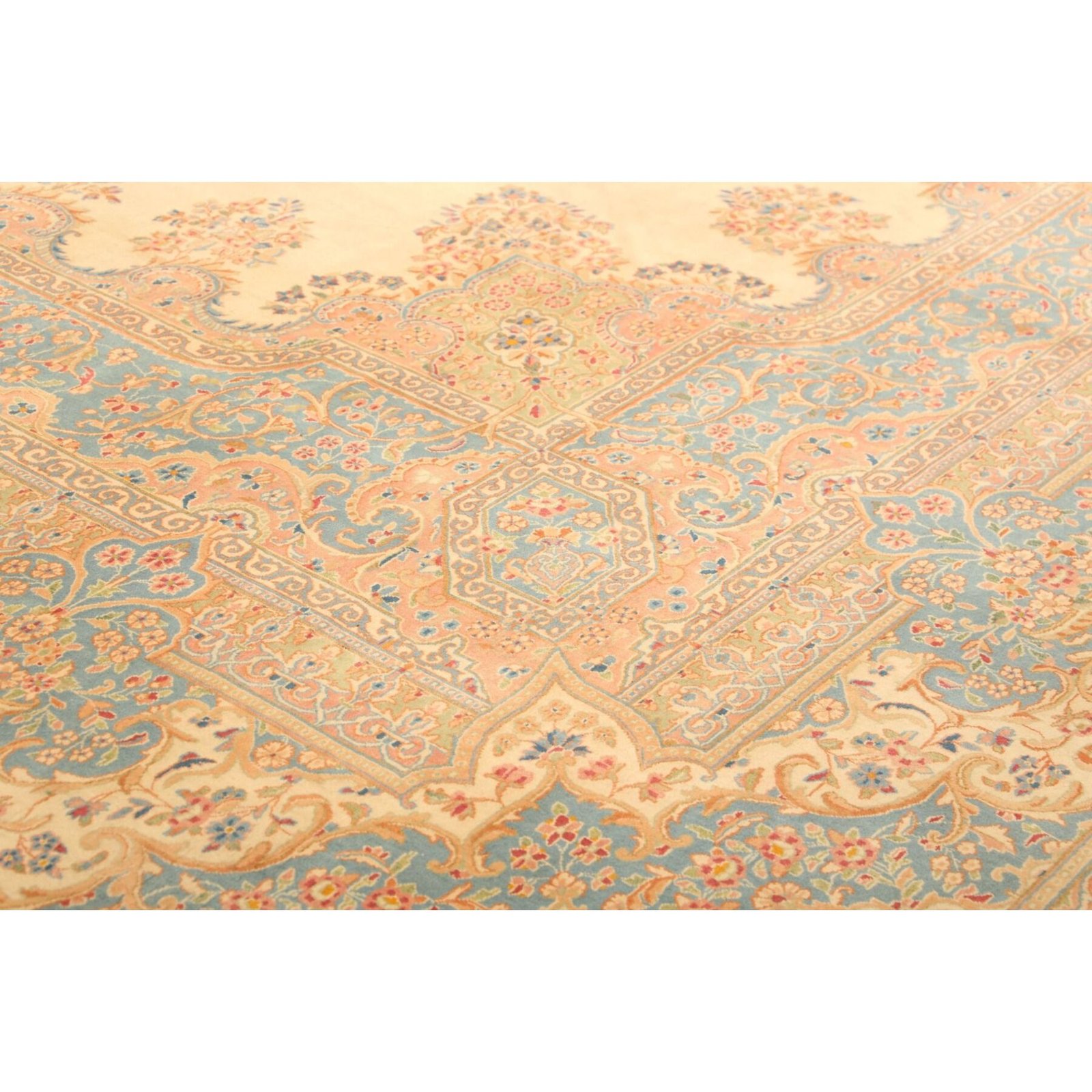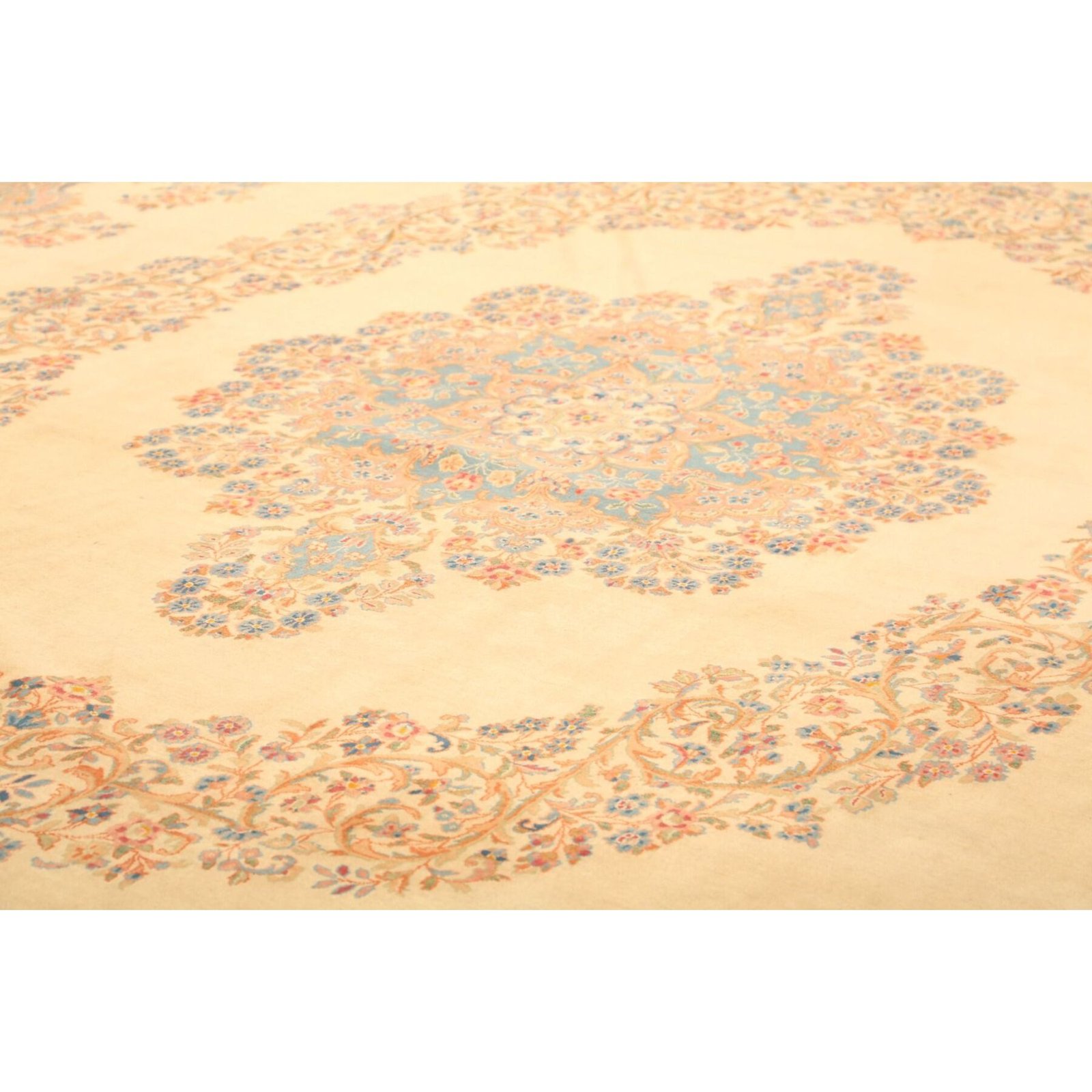 Die ersten Kerman-Teppiche wurden in Kerman, einer iranischen Stadt im Südosten des Landes, vor über tausend Jahren hergestellt. Kerman-Teppiche wurden auf der ganzen Welt populär gemacht, als Marco Polo ihre unglaubliche Handwerkskunst und ihr unverwechselbares Design bemerkte. Sie zeichnen sich normalerweise durch ein florales oder architektonisches Thema in der Bordüre, mit einem Medaillon in der Mitte des Teppich aus.
