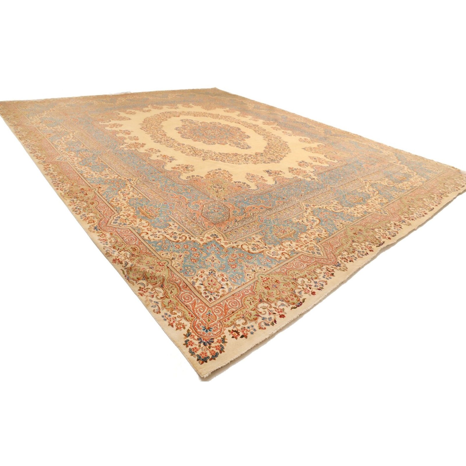 Diese Teppiche aus dem Iran sind handgeknüpft, normalerweise mit asymmetrischen Knoten bis zu einer Dichte von ca. 220.000 bis 380.000 Knoten pro Qm. Die Kette und Schussstruktur besteht aus Baumwolle. Der Flor, der Teppiche besteht aus sehr feiner Hochlandwolle.
