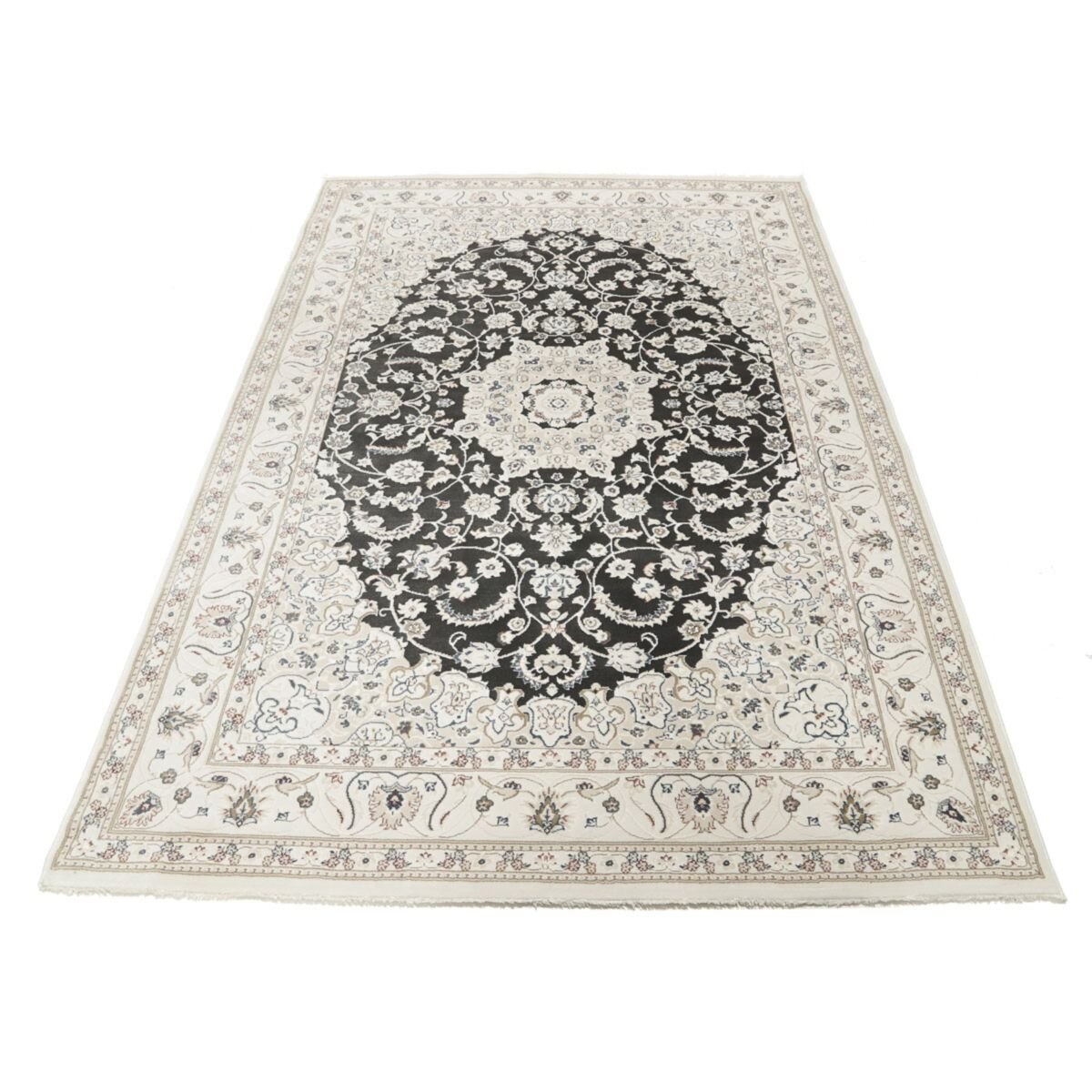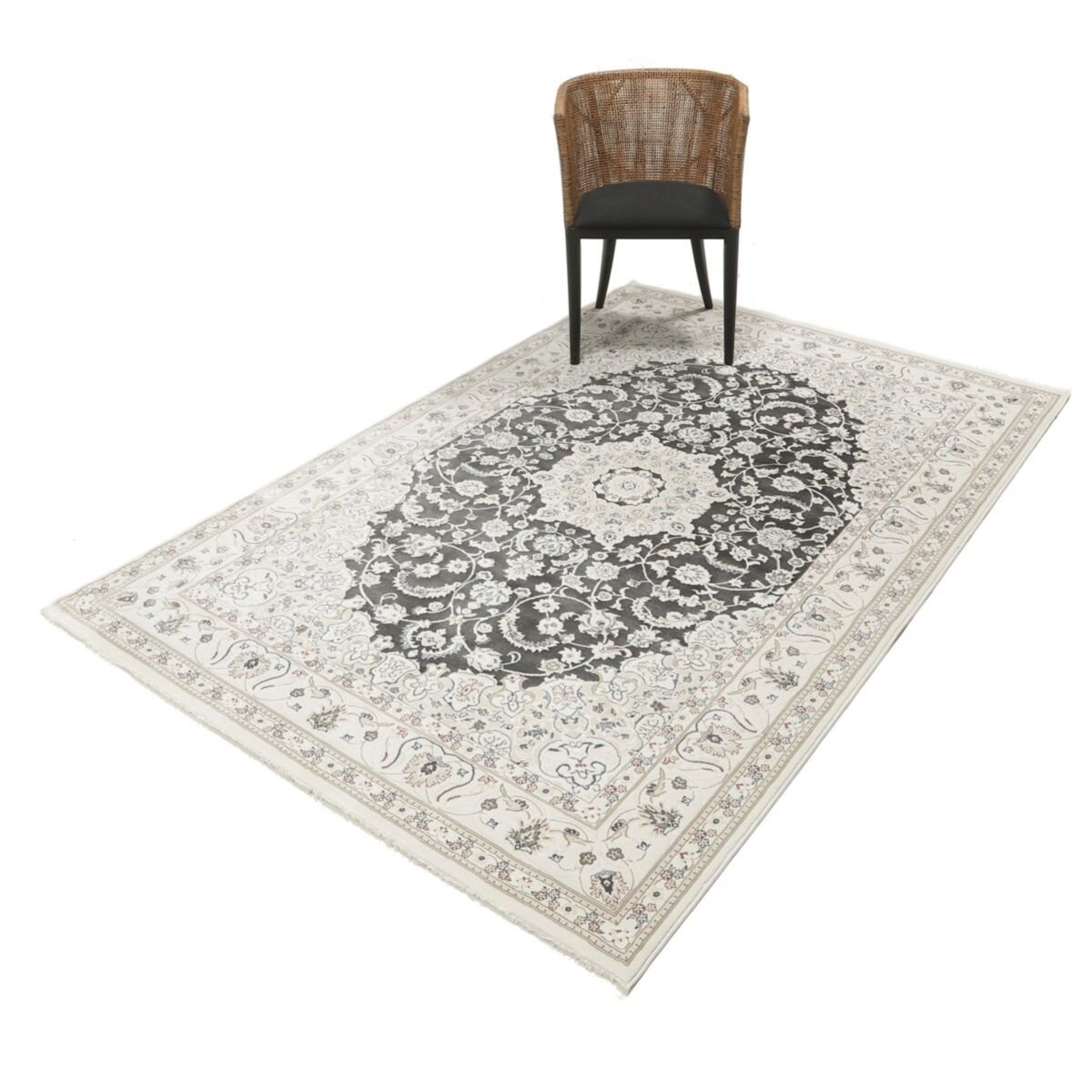 Üppige Ornamente und Arabesken in sanften Tönen sind das Markenzeichen des Nain-Teppichs. Ursprünglich war die Stadt für ihre kunstfertigen Tuchmacher bekannt und berühmt; vor rund hundert Jahren entwickelte sich hier auch eine ganz eigene Teppich-Knüpftradition. Bei den besonders feinen Exemplaren dieser Gattung werden Musterdetails mit Seide herausgearbeitet.