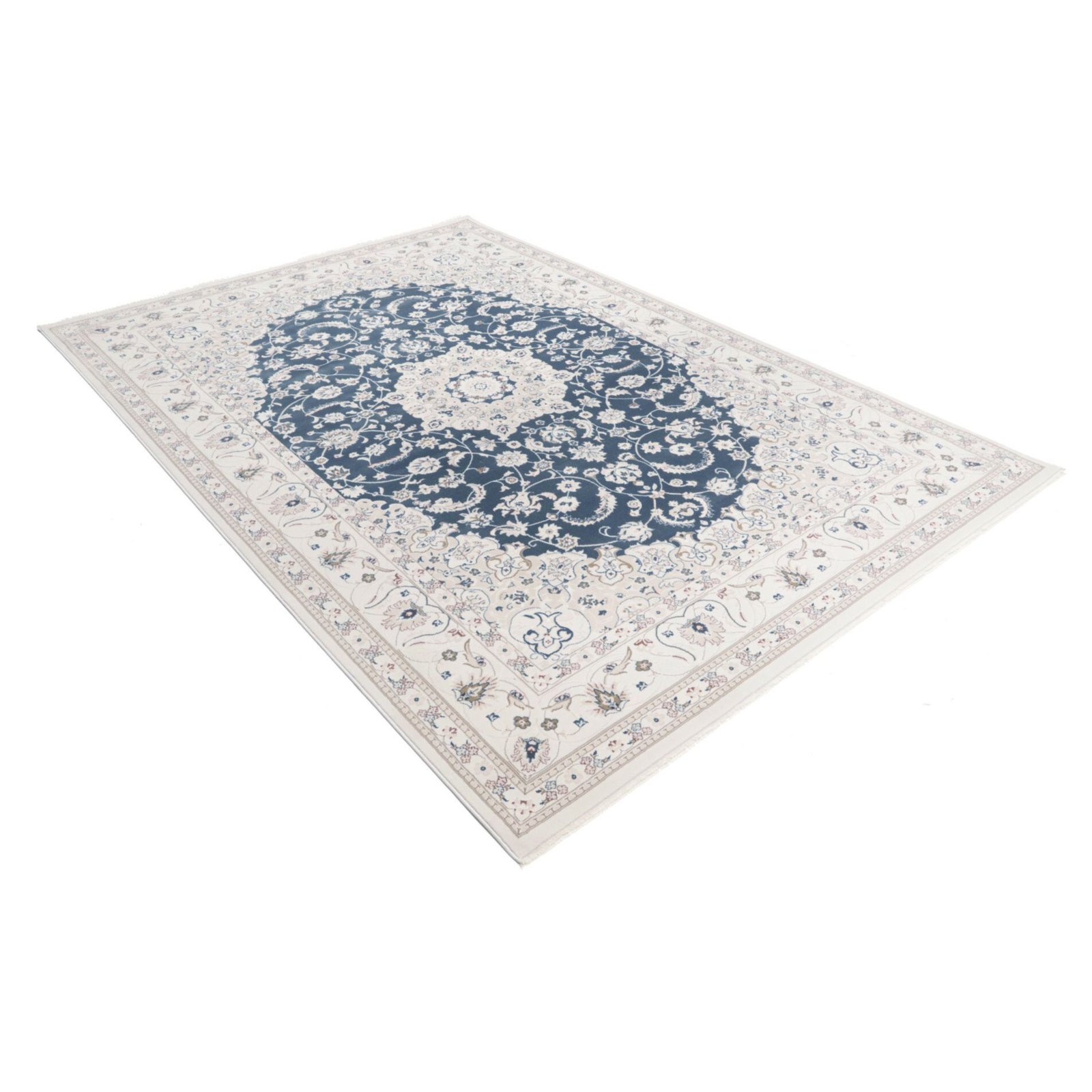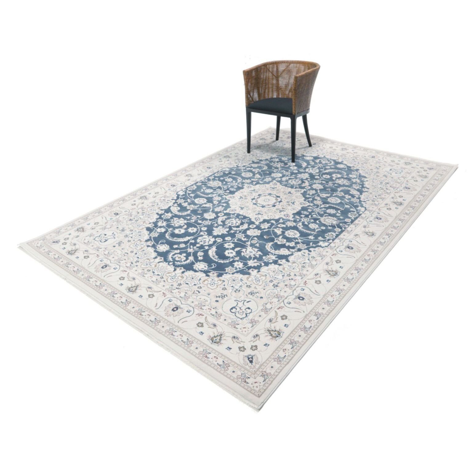 Üppige Ornamente und Arabesken in sanften Tönen sind das Markenzeichen des Nain-Teppichs. Ursprünglich war die Stadt für ihre kunstfertigen Tuchmacher bekannt und berühmt; vor rund hundert Jahren entwickelte sich hier auch eine ganz eigene Teppich-Knüpftradition. Bei den besonders feinen Exemplaren dieser Gattung werden Musterdetails mit Seide herausgearbeitet.